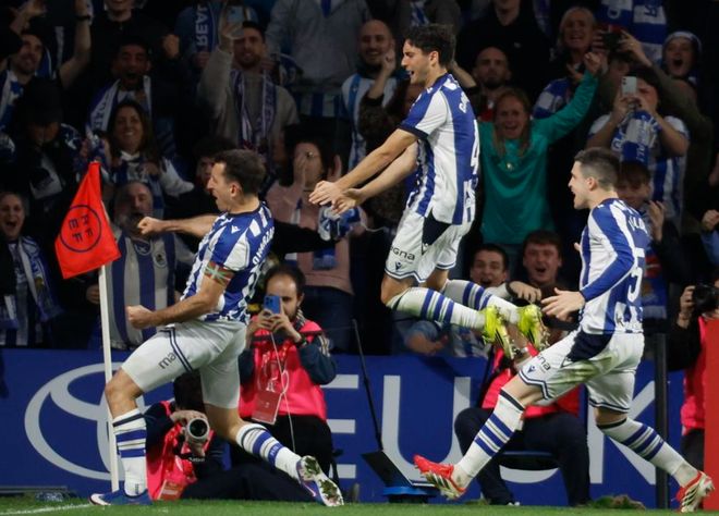 皇家社会在国王杯半决赛次回合的比赛中,以1-0击败了毕尔巴鄂竞技。奥亚萨瓦尔在第87分钟通过点球机会完成致命一击,帮助皇家社会取得了胜利。双方的首回合比赛皇家社会也是1-0获胜。因此,皇家社会完成双杀,以2-0的总比分淘汰毕尔巴鄂竞技,杀入决赛,将与淘汰巴萨的马竞争夺国王杯的冠军!